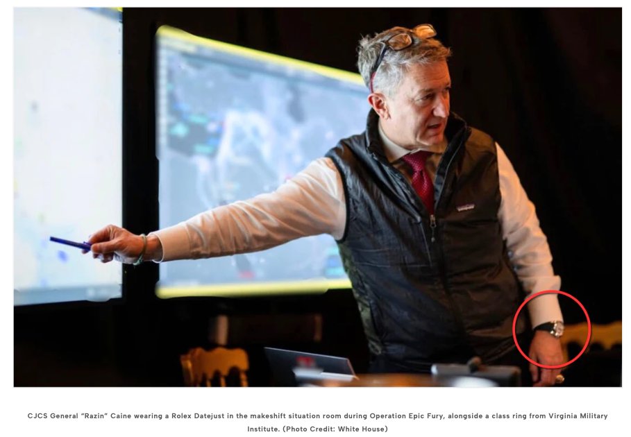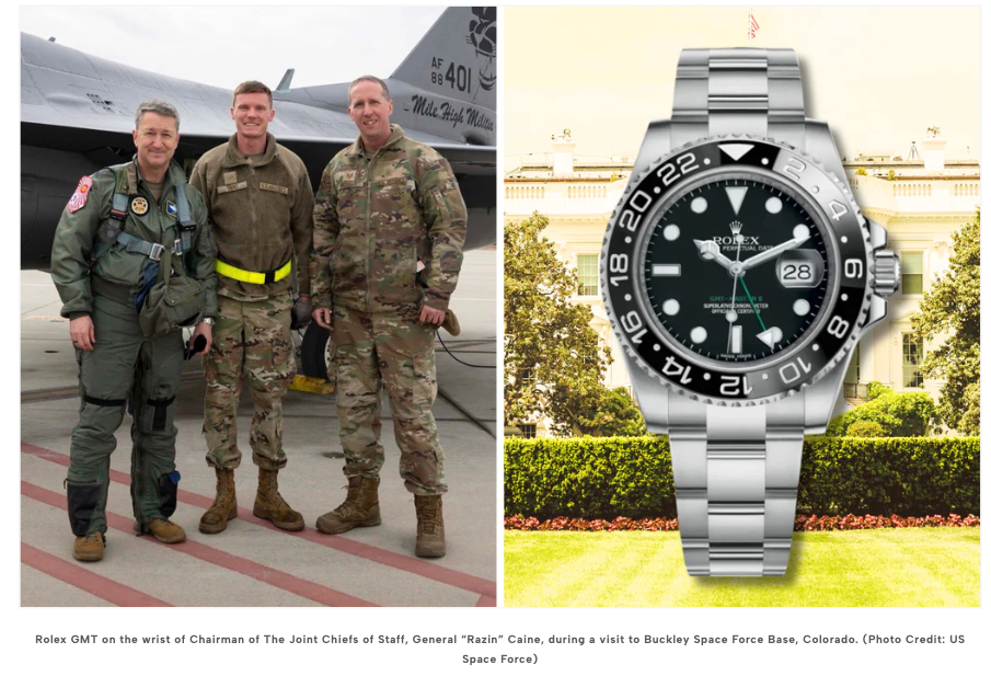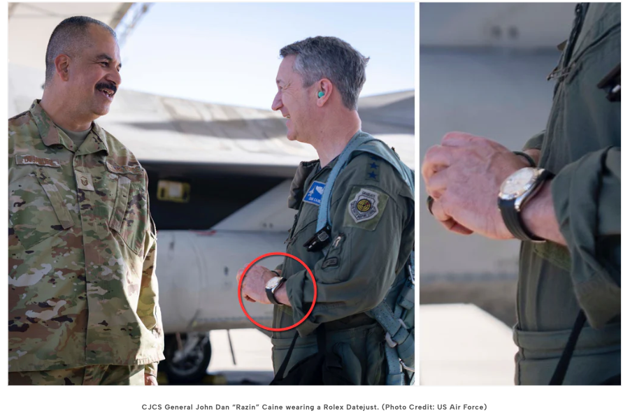 Dieses zusätzliche Schmuckstück untermauert seinen Status als ausgewiesener Uhrenliebhaber. Bemerkenswert ist auch, dass Caine von 2021 bis 2024 als stellvertretender Direktor für Militärangelegenheiten (ADMA) bei der CIA tätig war, und man kann getrost sagen: „Er ist einer von uns.“