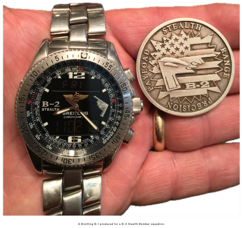 Wir haben bereits zuvor (lesen Sie HIER ) mehrere Uhren dokumentiert, die für die Piloten des B-2 Stealth Bombers nach der Operation Midnight Hammer im Juni 2025, die auf iranische Atomanlagen abzielte, angefertigt wurden, darunter eine Breitling B-1 and Aerospace, eine Bremont ALT1-B2 GMT und in Kleinserien gefertigte Omega X-33, die speziell für die Stealth-Bomber-Community angefertigt wurden.