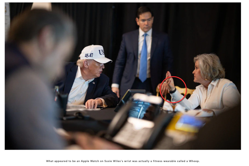 Nachdem das Weiße Haus Fotos von hochrangigen Beamten veröffentlicht hatte, die Militäroperationen im Iran überwachten, behaupteten einige Beobachter schnell, dass Stabschefin Susie Wiles eine Apple Watch oder eine andere Smartwatch trug, was ein potenzielles Sicherheitsrisiko darstellen könnte.
