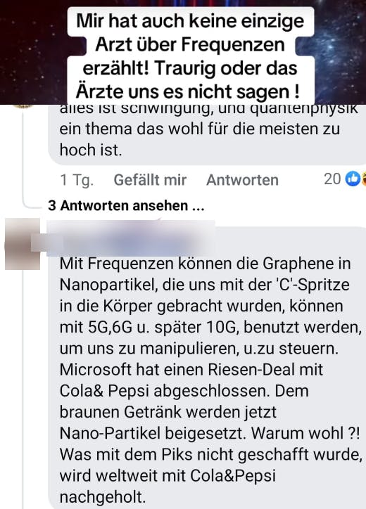 Jetzt, wo die „C-Spritze“ ihrer Meinung nachgescheitert ist, kommt die nächste absurde Theorie: Das Gleiche soll angeblich über Cola und Pepsi in unsere Körper gelangen. Und wer ist natürlich wieder der Bösewicht? Richtig, Microsoft! Die Firma, die doch angeblich heimlich einen „Riesen-Deal“ mit den Cola-Giganten abgeschlossen haben soll, um uns Nano-Partikel in die Getränke zu mischen und uns – man hört und staune – über das als nächstes erfundene „10G“ zu steuern.
